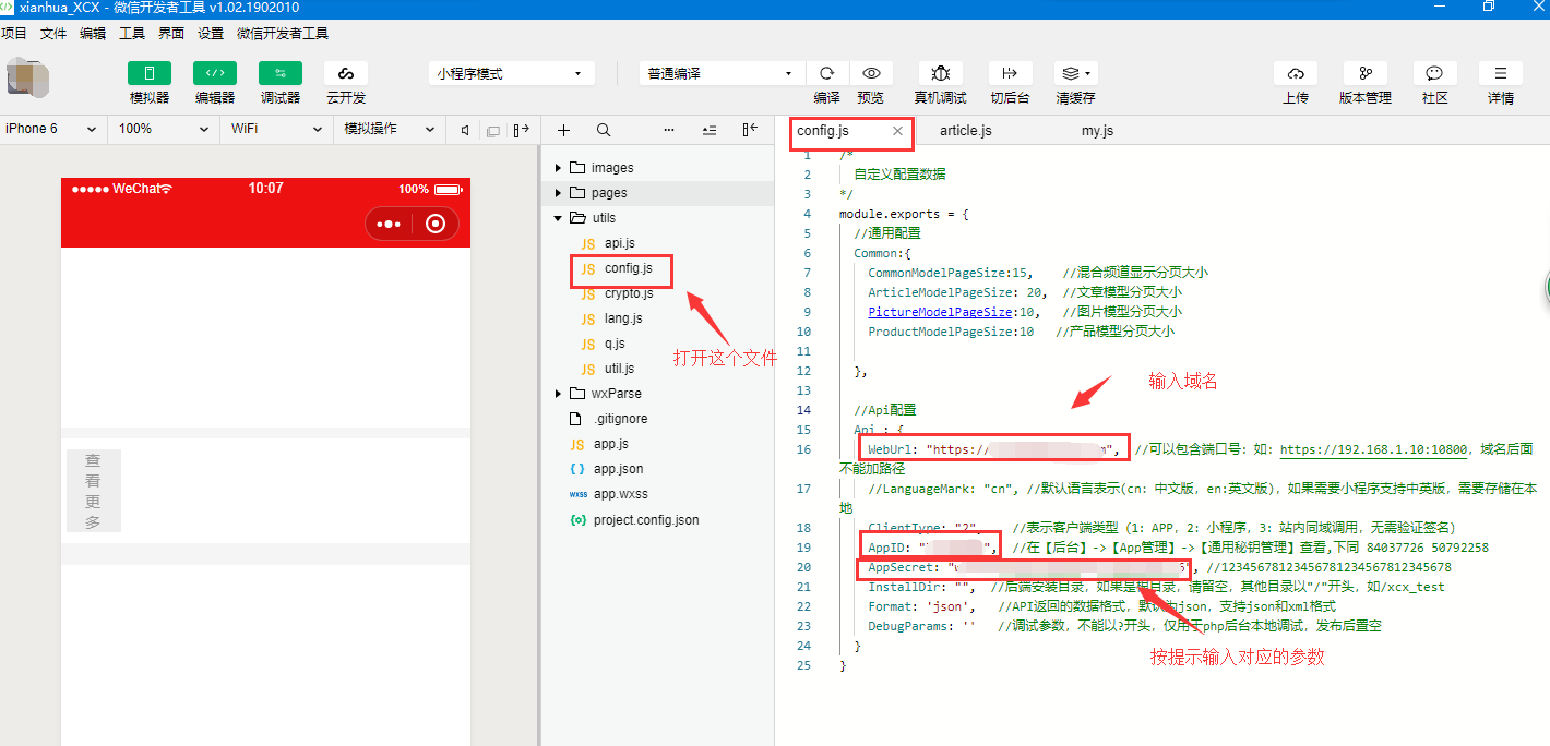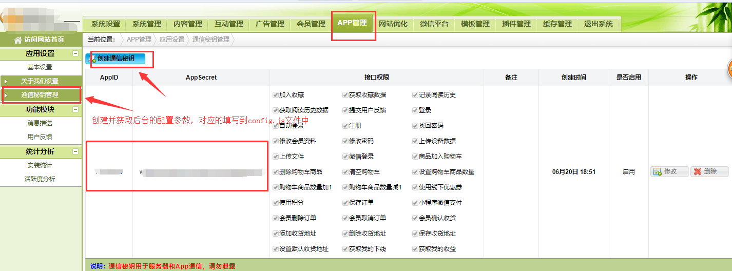 后臺【APP管理】-【通信秘鑰管理】里面獲取參數填寫到小程序文件 utils/config.js
