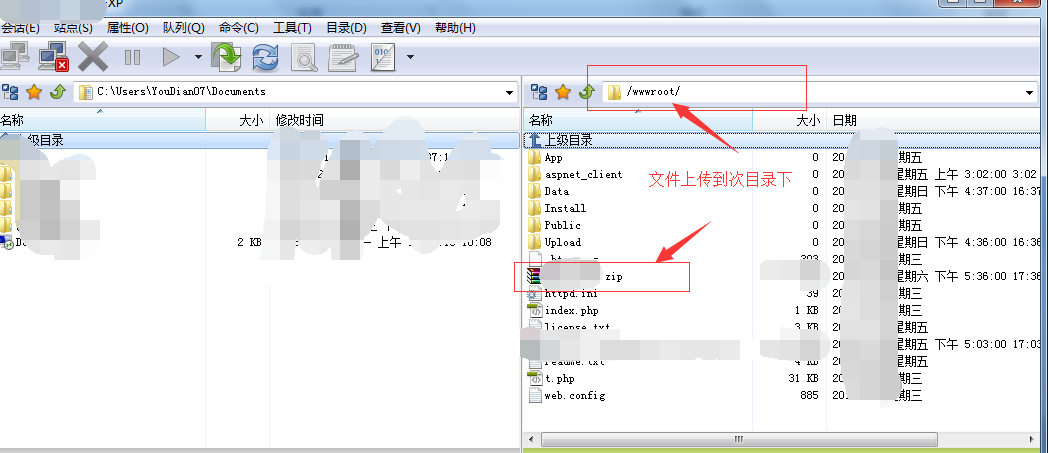 2、 FTP上傳文件到wwwroot目錄下面