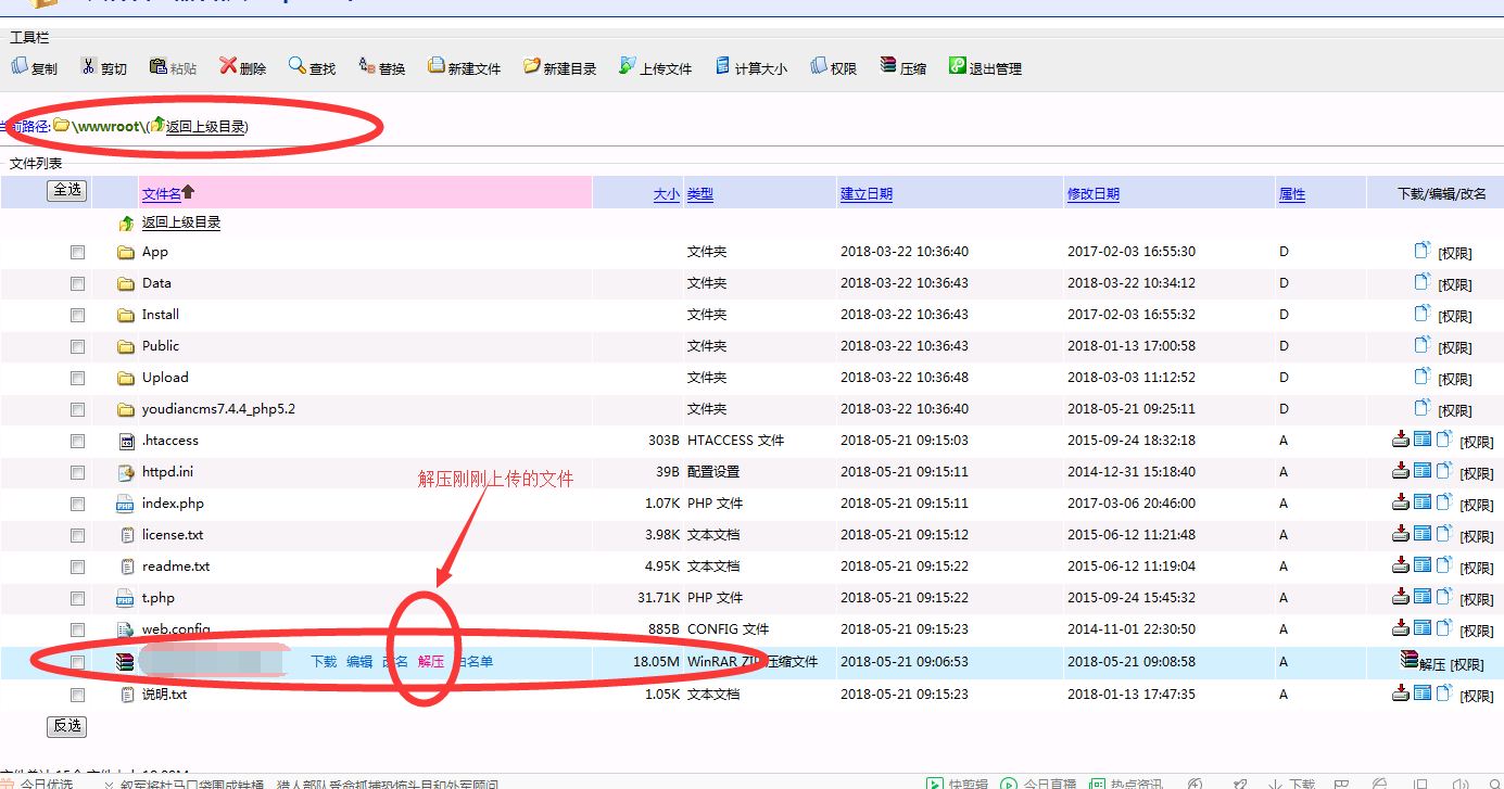 1、 下載我們系統(tǒng)的程序,打包成ZIP文件(不要單獨(dú)上傳解壓后的文件)下載地址:點(diǎn)擊下載YouDianCMS系統(tǒng)